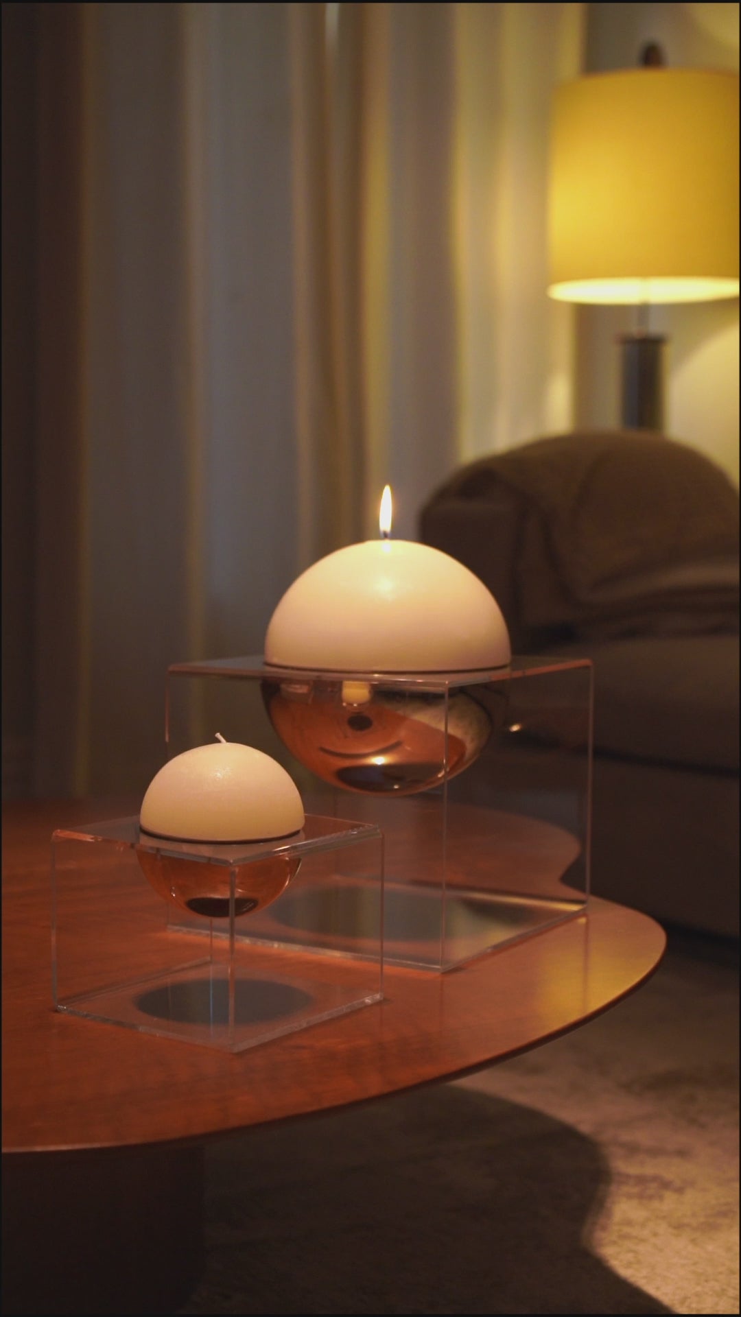 Material Acrylic, Gold-plated resin sphere, Brass support, Candle