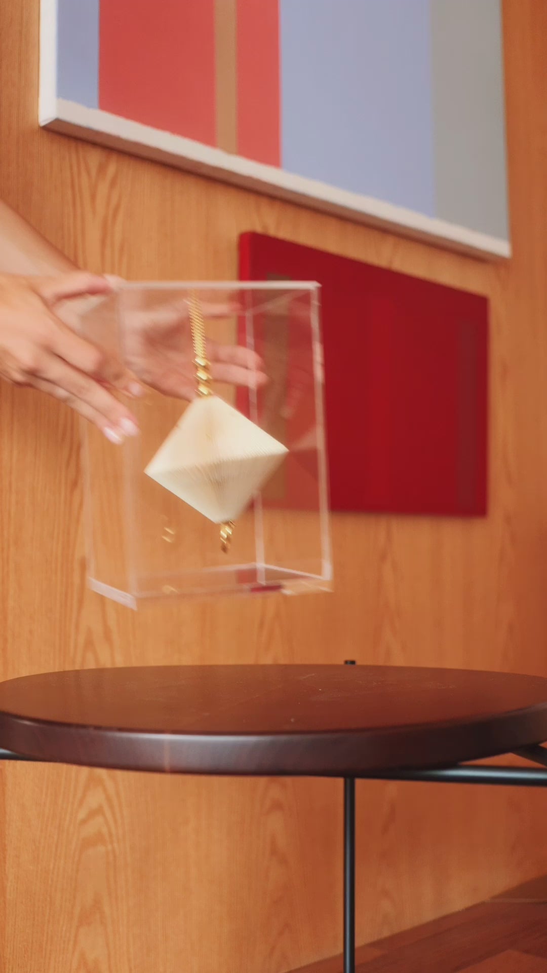 Material Acrilico, Origami em papel, Corrente e Argolas em aço com banho em ouro